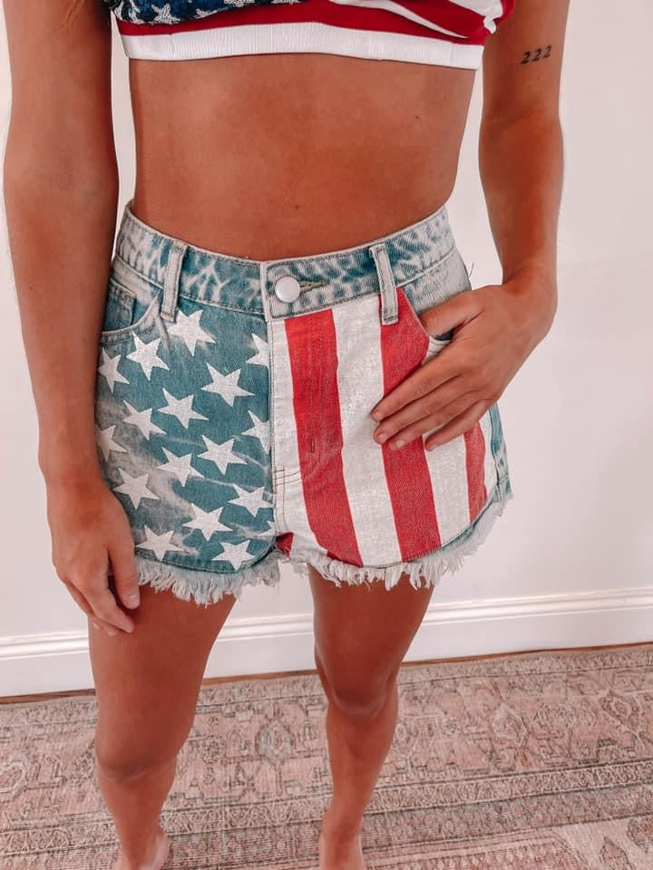 These shorts would be perfect for the 4th of July! Shorts have some stretch! The perfect length, and can be styled so many different ways!