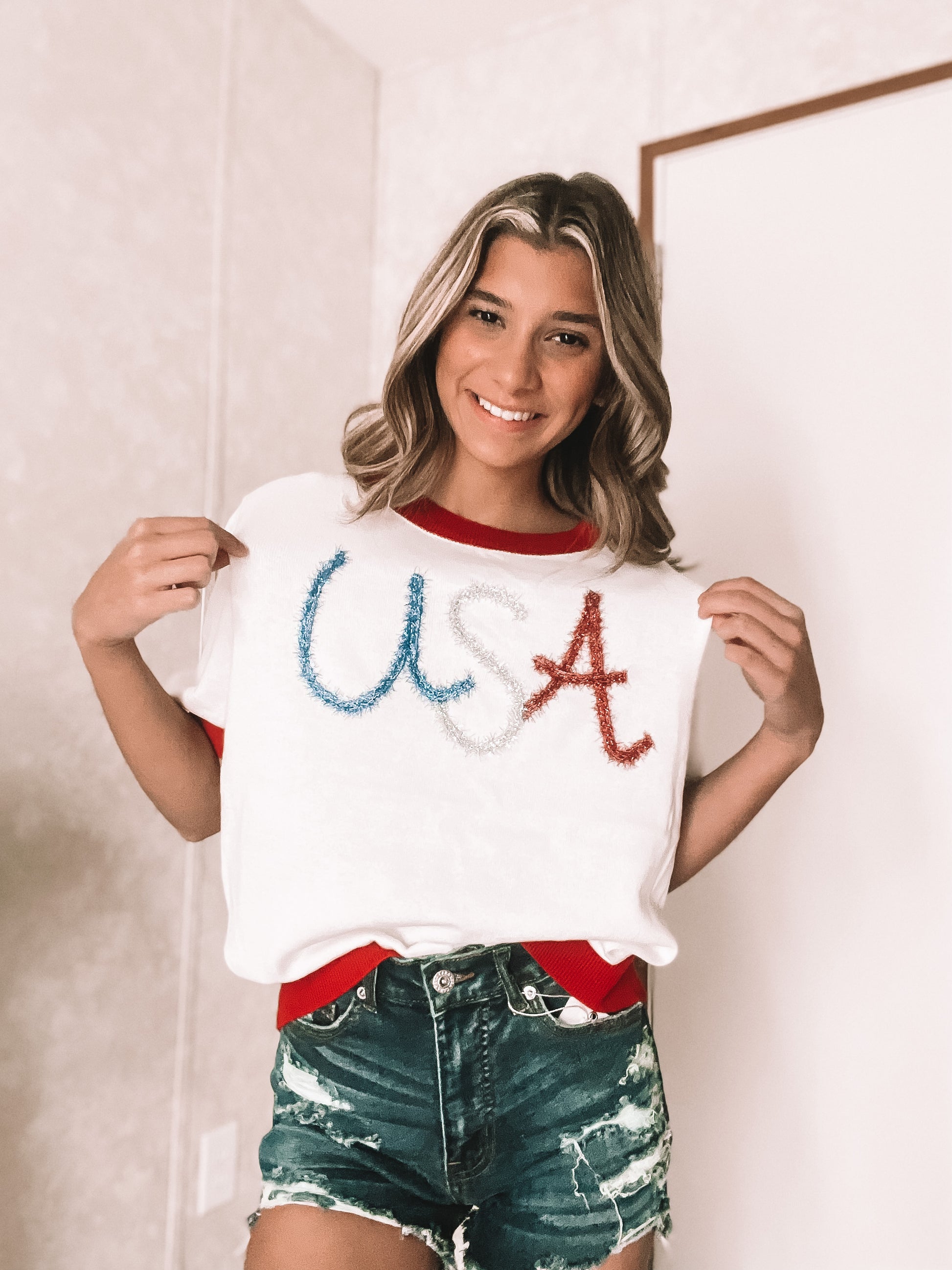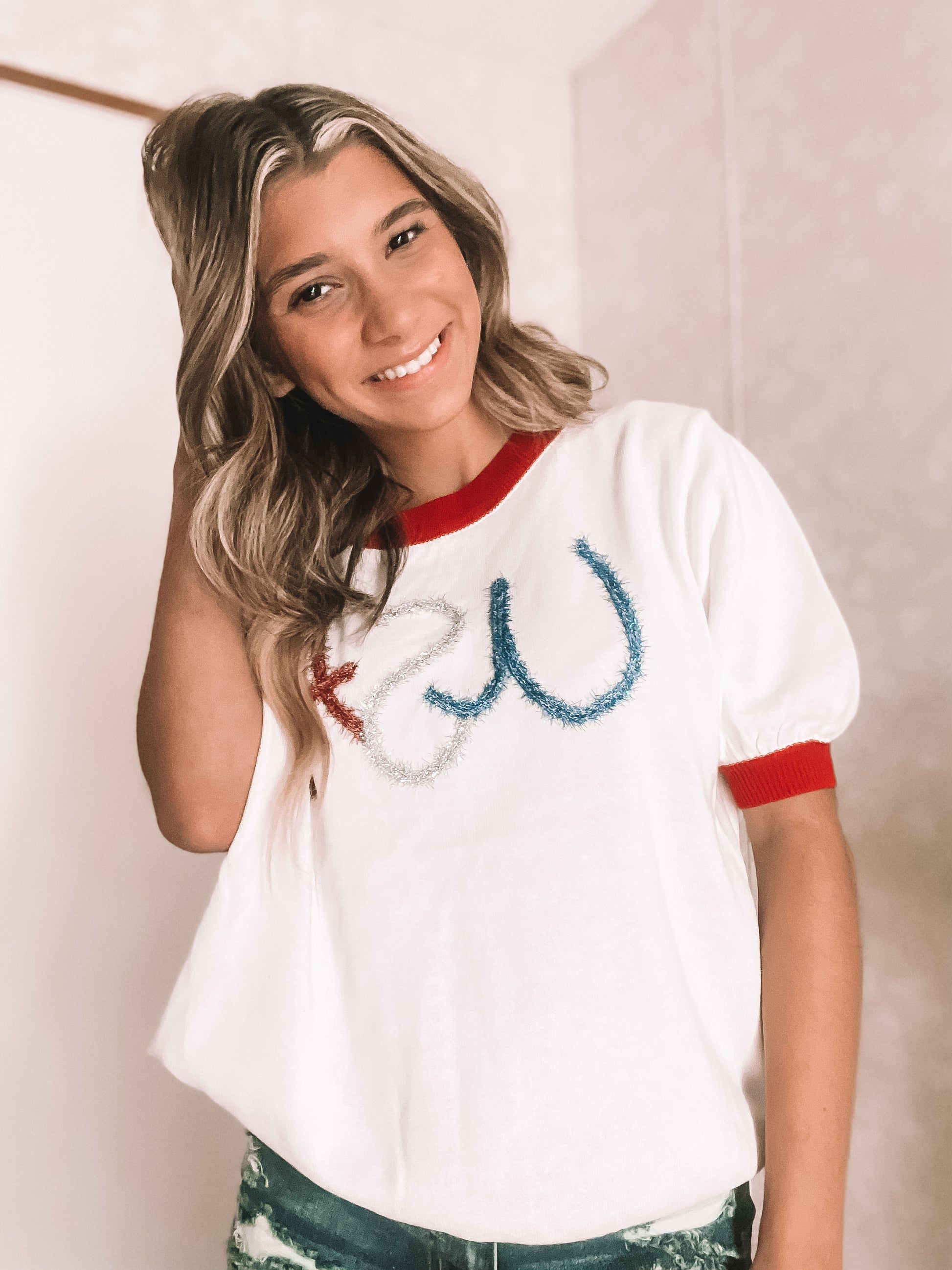 the cutest top for the fourth! This top would pair great with our flag shorts!